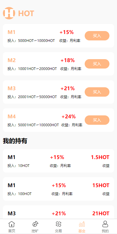 产品支持质押挖矿,基金购买,代币买入卖出